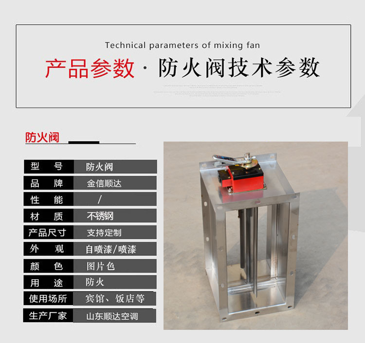 排煙防火閥是一種消防部件,一般安裝在機(jī)械排煙系統(tǒng)的管道上,平時(shí)呈開(kāi)啟狀態(tài),發(fā)生火災(zāi)時(shí)開(kāi)啟排煙,當(dāng)排煙管道內(nèi)煙氣溫度達(dá)到280度時(shí)關(guān)閉,并在一定時(shí)間內(nèi)滿足漏煙量和耐火完整性要求,起隔煙阻火作用。主要材質(zhì):碳素鋼、鍍鋅板、不銹鋼。